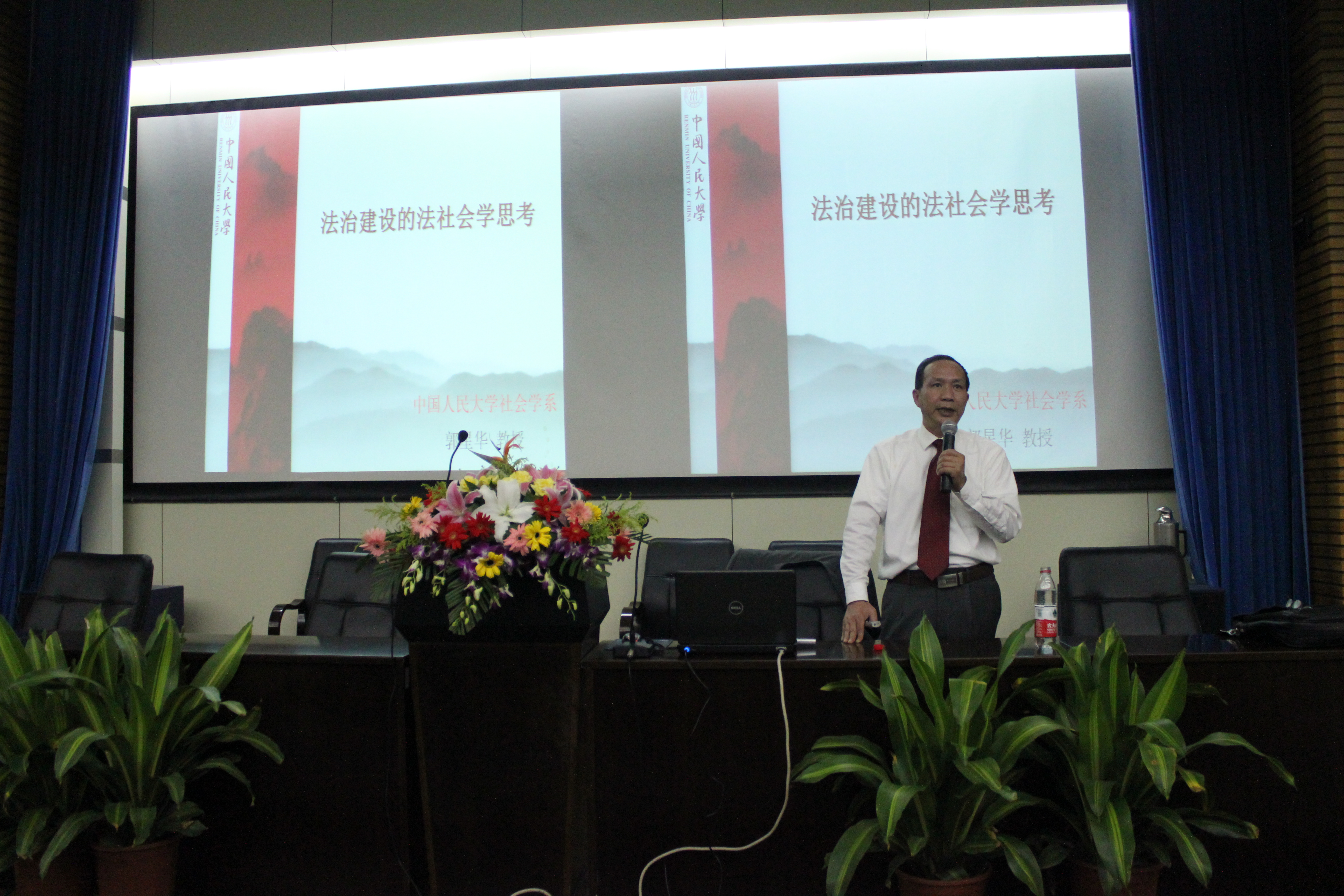 10月14日,应william威廉亚洲官方邢鸿飞经理邀请,中国人民大学社会与人口公司党委书记兼副经理、博士生导师郭星华教授莅临william威廉亚洲官方,为公司学子带来了以“法制建设的法社会学思考”为主题的报告会。 郭教授从社会治理的理念、法制建设的进程、本土法律的困境等几个方面,深入浅出地向同学们介绍了法制与法治的相关问题以及中国法律体系建设的历史和现状。郭教授新颖的观点,风趣的语言,使同学们受益匪浅。讲座最后,公司学子积极向郭教授提出法社会学方面的问题,与郭教授进行了积极探讨和学习。 通过此次讲座,郭星华教授为公司学子打开了从多维视角看法学的大门,增强了法学领域的创新思维,促进了法学学科与其它学科的融会贯通。  |