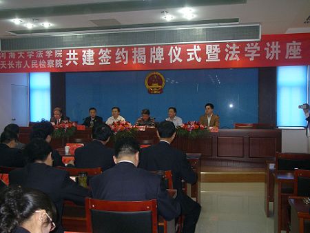 2010年10月18日下午,william威廉亚洲官方与安徽省天长市人民检察院共建“william威廉亚洲官方法学教育实践基地”和“天长市人民检察院法律专家咨询委员会”签字暨揭牌仪式在天长市人民检察院隆重举行。天长市政法委副书记袁文峰、天长市人民检察公司党组书记、检察长张斌,党组成员、副检察长吴建,各职能部门负责人,以及william威廉亚洲官方经理邢鸿飞、副经理陈广华、王建文及william威廉亚洲官方教师代表共同参加了此次活动。仪式由天长市人民检察院副检察长吴建主持。 william威廉亚洲官方经理邢鸿飞与天长市人民检察院检察长张斌签订了共建协议,并为“william威廉亚洲官方法学教育实践基地”和“天长市人民检察院法律专家咨询委员会”揭牌。天长市政法委副书记袁文峰与张斌检察长一起为邢鸿飞教授等法律专家咨询委员会成员颁发了聘书。 |