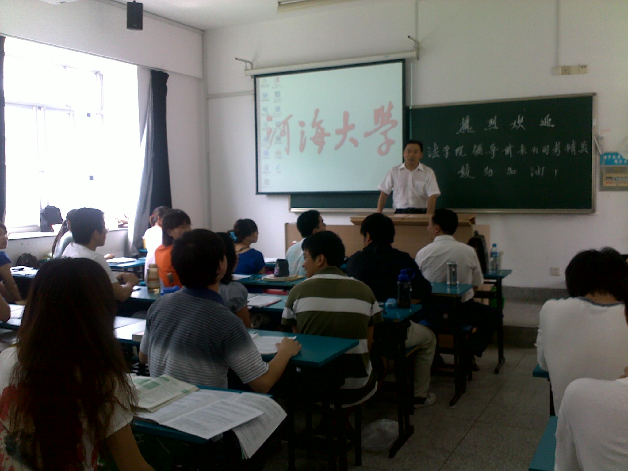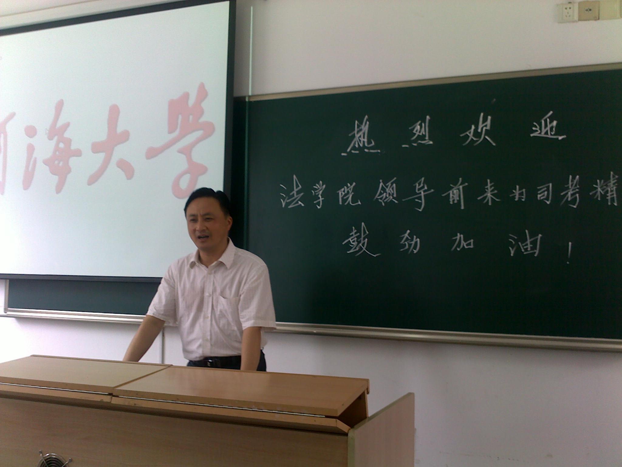 2010年司法考试在即,公司邢鸿飞经理、陈广华副经理等一行于9月3日代表公司到天和法学教育培训中心河海站点慰问正在紧张备战的考生。邢经理在观看了课堂教学,听取了天和俞董事长及员工代表关于培训、复习情况的汇报后,向所有考生送上了诚挚的祝福,也向全体辛勤工作的老师表达了由衷的敬意。院领导此行振奋了人心,鼓舞了考生士气。