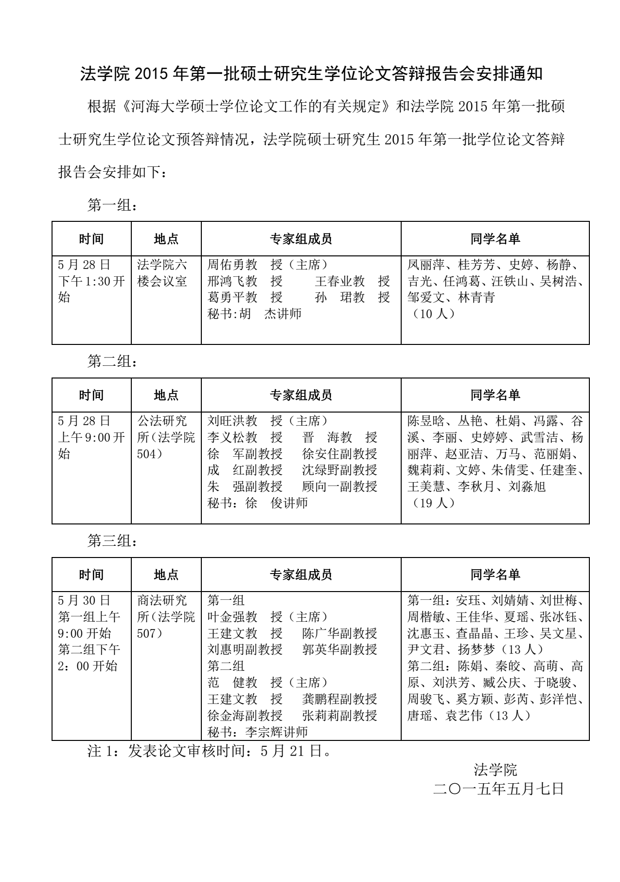 2015年第一批硕士研究生学位论文答辩报告会安排通知