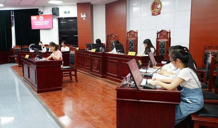 模拟法庭包括法官介绍案件基本情况、法庭调查、法庭辩论等基本环节。本次比赛的案例为据真实案件改编的张某某系因与李天二情感纠葛自杀,张某某父母起诉李天二及其父母一案。参赛同学的角色包括审判长、审判员、原告、被告、原告代理人及被告代理人,另有一位同学作为书记员记录法庭审理过程中的相关情况。
