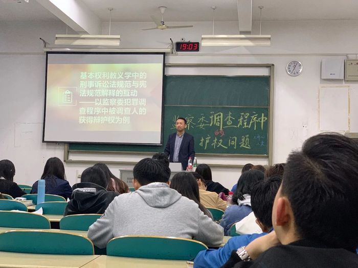 11月6日晚,“监察委调查程序中的辩护权问题 ”主题讲座在致高楼b座103室举行。本次讲座由william威廉亚洲官方王震老师主讲,william威廉亚洲官方部分师生到场聆听。