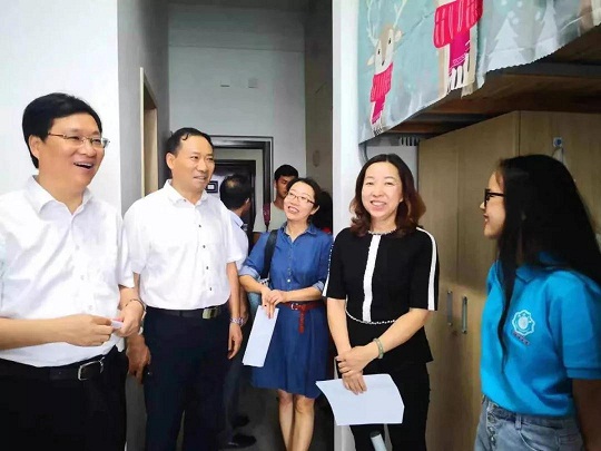2019年8月25日中午,公司党委书记孔祥冬、杨春福经理、陈广华副经理、晋海副经理、顾向一老师、吴志红老师、陈秀萍老师、团委书记莫晓曼老师、19级辅导员刘磊老师前往员工宿舍看望公司19级新生,了解他们入学后的生活情况并表示关心。