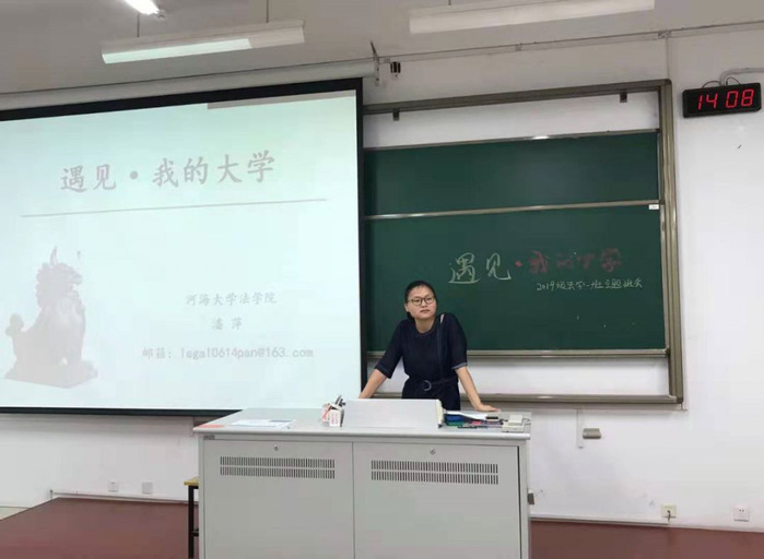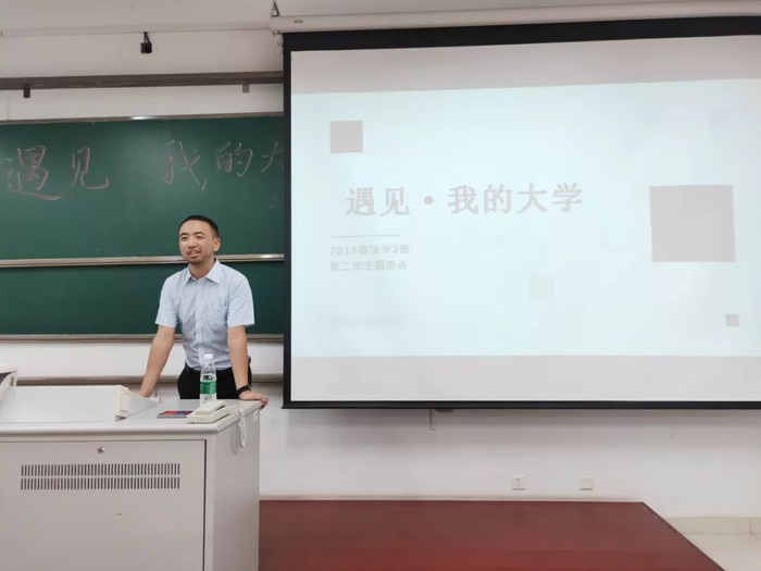 同时,法学二班的同学们在班主任王震老师的组织下进入了“遇见·我的大学”为主题的主题班会,逐渐了解法学专业的相关内容。