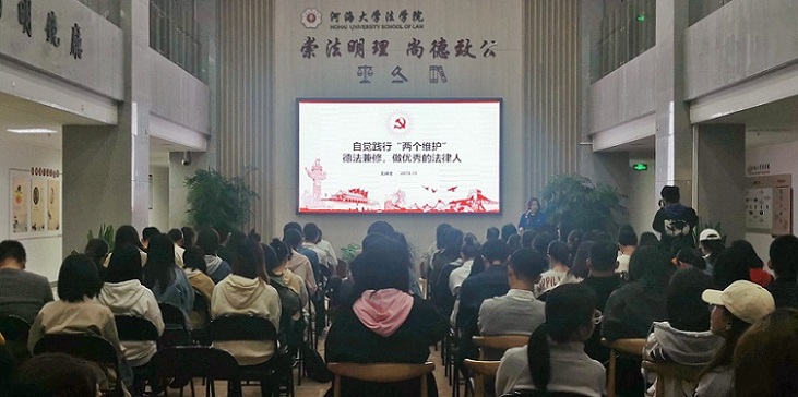 孔祥冬书记以“自觉践行‘两个维护’,德法兼修,做优秀的法律人”为主题,从四个部分进行阐述:第一部分介绍“两个维护”的深刻意蕴,指出新的历史时期,面临新的任务、新的挑战、新的历史使命,我们的任务更加繁重,因此要克服前进道路上的种种障碍,把改革开放进行到底。实现“两个一百年”的奋斗目标,实现中华民族伟大复兴的中国梦,就必须坚持“两个维护”。第二部分在全面分析历史的、现实的,国内的、国外的各种因素的基础上,强调坚持“两个维护”的重要性和必要性。第三部分介绍如何自觉坚持“两个维护”。要把“两个维护”作为严格的政治纪律,与自己的生活、工作紧密结合。通过坚定理想信念、认真贯彻党的基本路线、严格遵守党的政治纪律、落实民主集中制、严格党内组织生活、勇于开展批评与自我批评等方面自觉践行“两个维护”。第四部分结合公司团队队伍建设和人才培养的实践,从德法兼修、以德为先;与人为善、做善良的法律人;理论与实践并重,培养综合素质等方面就如何成为优秀的法律人对师生提出要求。