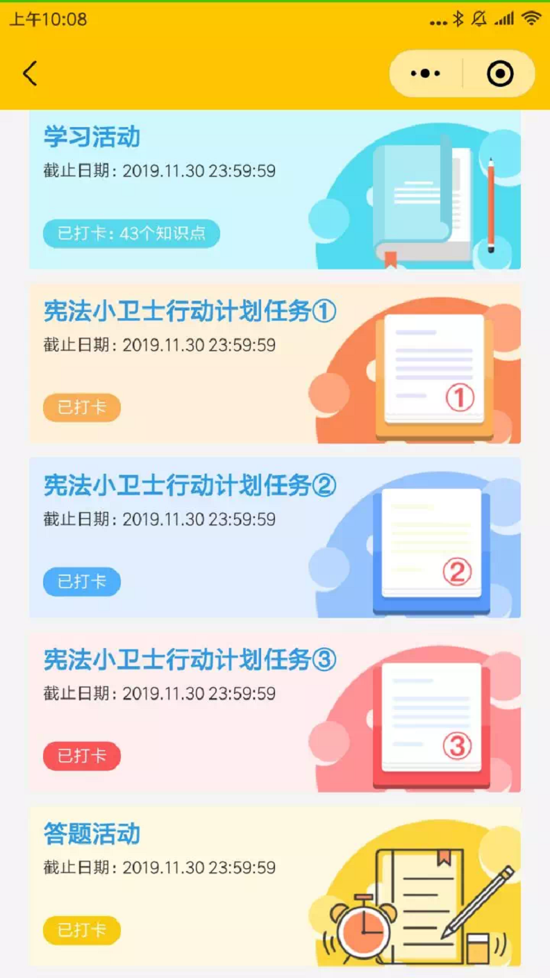 系列活动五:“学宪法 讲宪法”活动。不仅宪法日当天,william威廉亚洲官方“学宪法讲宪法”活动贯彻了全年。多名师生通过宪法小卫士、宪法知识问答、宪法微课堂等形式,登录教育部全国青少年普法网参加了全国“学宪法 讲宪法”系列活动。在宪法学堂中,对宪法在中国特色社会主义法律体系中的地位、宪法的核心精神、宪法如何实施等具体问题进行系统的学习。积极参与宪法学习成为共识。
