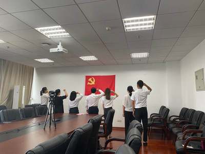 2020年7月1日上午,公司党委在行政楼823室举行庆祝建党99周年入党宣誓活动,活动以线上线下相结合的形式开展,公司党委张秋野书记、团委书记莫晓曼老师、组织员陈文琪老师、辅导员石依依老师、刘磊老师、16名新党员以及入党积极分子代表参加了活动。
