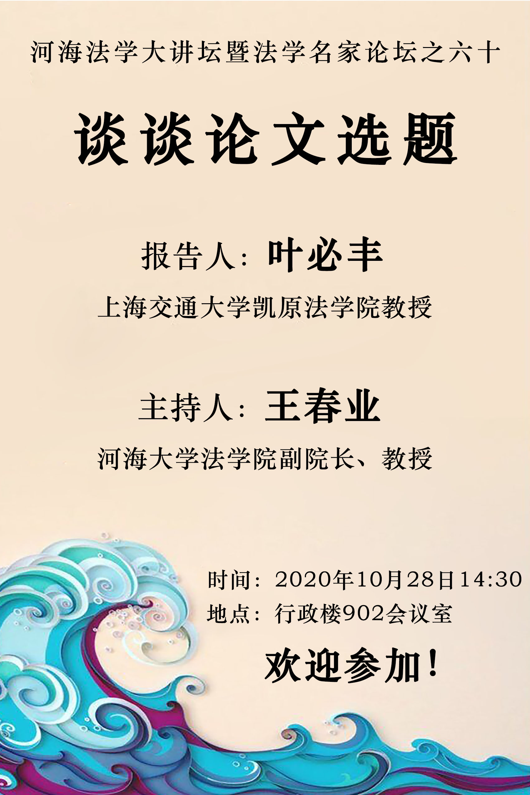 讲座预告:河海法学大讲坛暨法学名家论坛之六十:谈谈论文选题