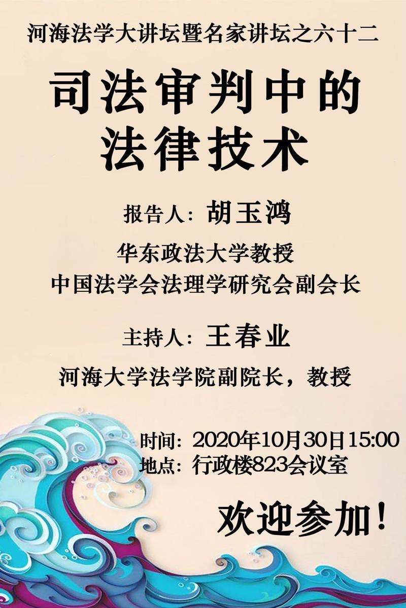 讲座预告:河海法学大讲坛暨名家讲坛之六十二