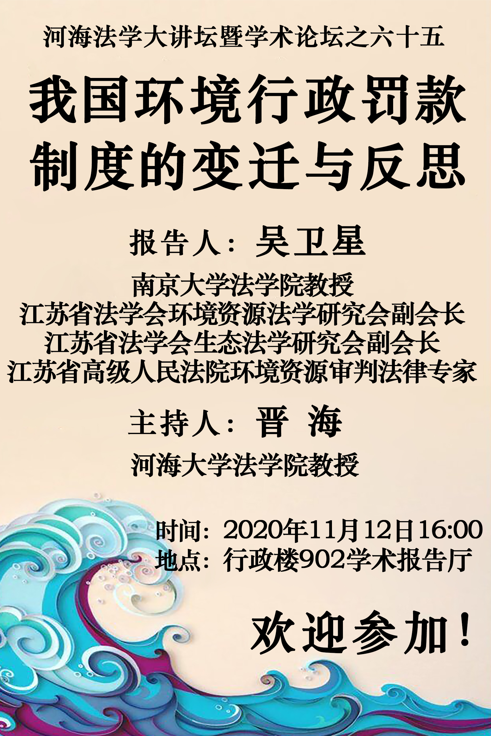 讲座预告:河海法学大讲坛暨学术论坛之六十五:我国环境行政罚款制度的变迁与反思