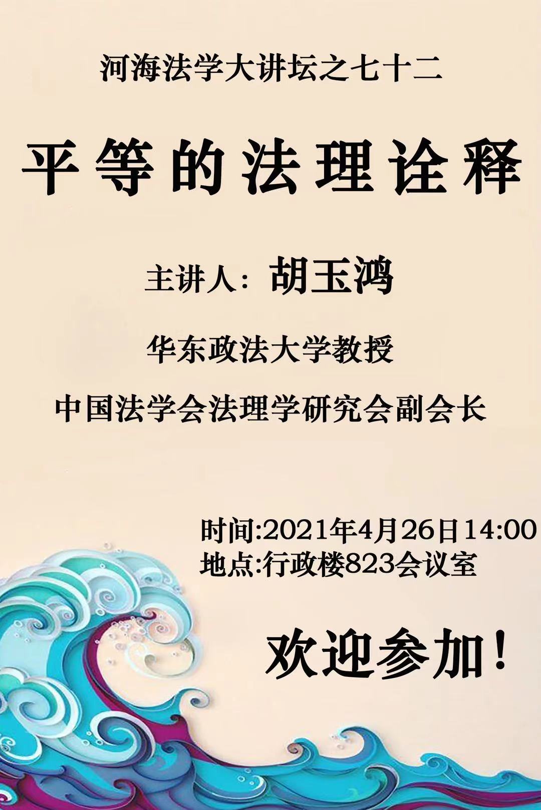 讲座预告:河海法学大讲坛之七十二:平等的法理诠释