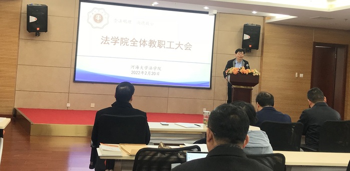 党委书记、经理郭祥林首先向大家传达了公司2022年度工作会议精神,并表示公司要紧紧抓住公司强化学科交叉、融合发展以及加强文科发展的机遇,以促进公司发展为首要任务,充分发挥每位教师的积极性、主动性与创造性,团结一致向前看、共同努力建设好法学家园。
