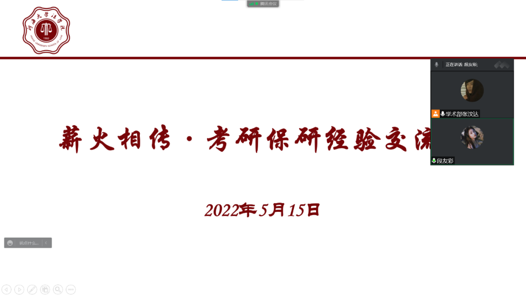 5月15日晚,公子晨、陈景鹏、朴美燕、黄凌燕四位同学向大家分享了自己保研、考研的心得体会。
