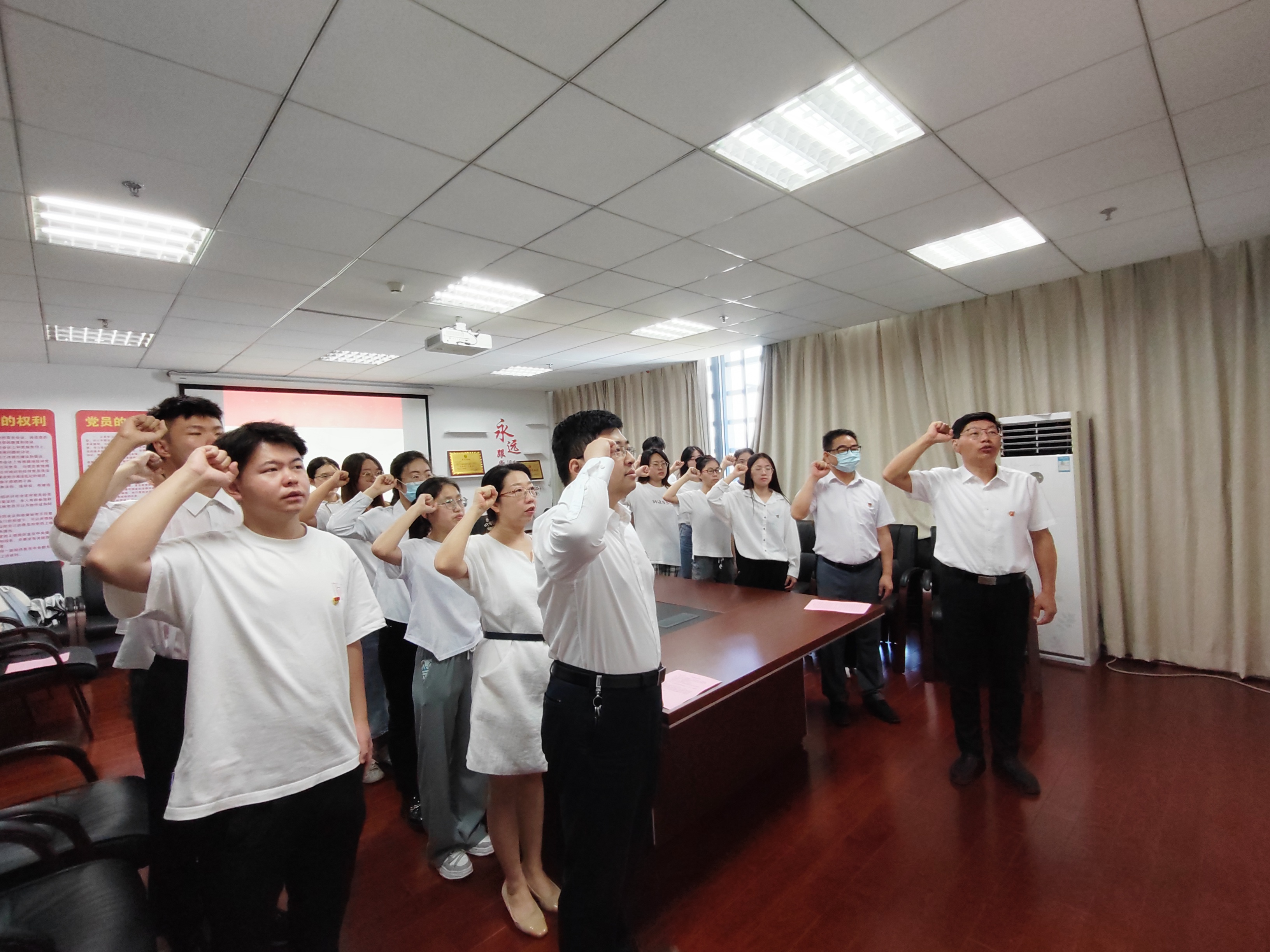 2022年7月1日上午,公司党委在行政楼929室举行庆祝建党101周年入党宣誓活动,公司党委书记、经理郭祥林,副书记、副经理李祎恒,党委委员、组织员、辅导员与16名新党员以及入党积极分子代表参加了活动。