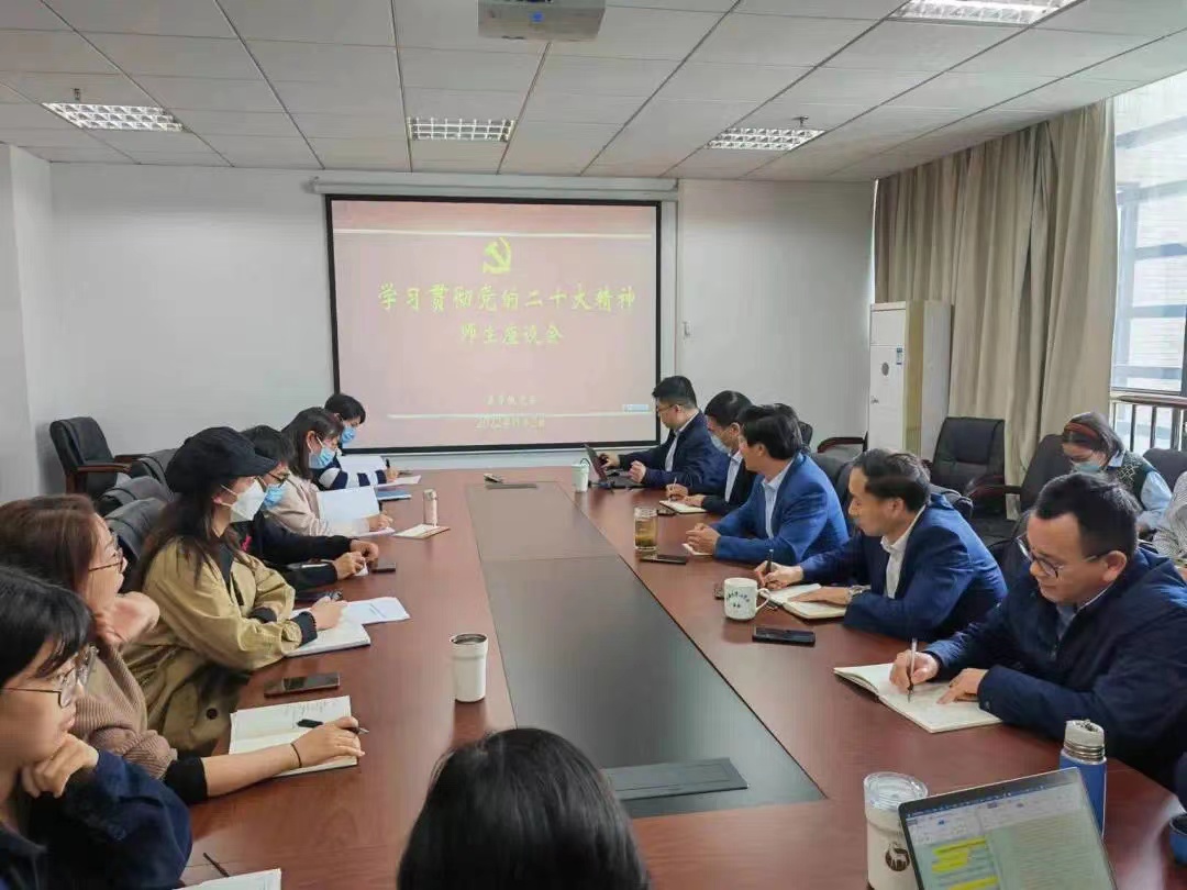 师生代表分享学习感想时谈到,要认真学习贯彻党的二十大精神,坚持中国特色社会主义文化发展道路,坚持马克思主义在意识形态领域指导地位,牢牢掌握党对意识形态工作领导权,深入推进社会主义核心价值观建设,为建设社会主义文化强国、铸就社会主义文化新辉煌而团结奋斗。与此同时,党的二十大审议通过的《中国共产党章程(修正案)》,顺应了时代要求、体现了全党意志、反映了人民心愿,是全党在新时代各项工作的根本遵循。全院师生要自觉学习党章、遵守党章、贯彻党章、维护党章,坚决捍卫“两个确立”,做到“两个维护”,把党章的精神和要求内化于心、外化于行,砥砺奋进,开拓创新。