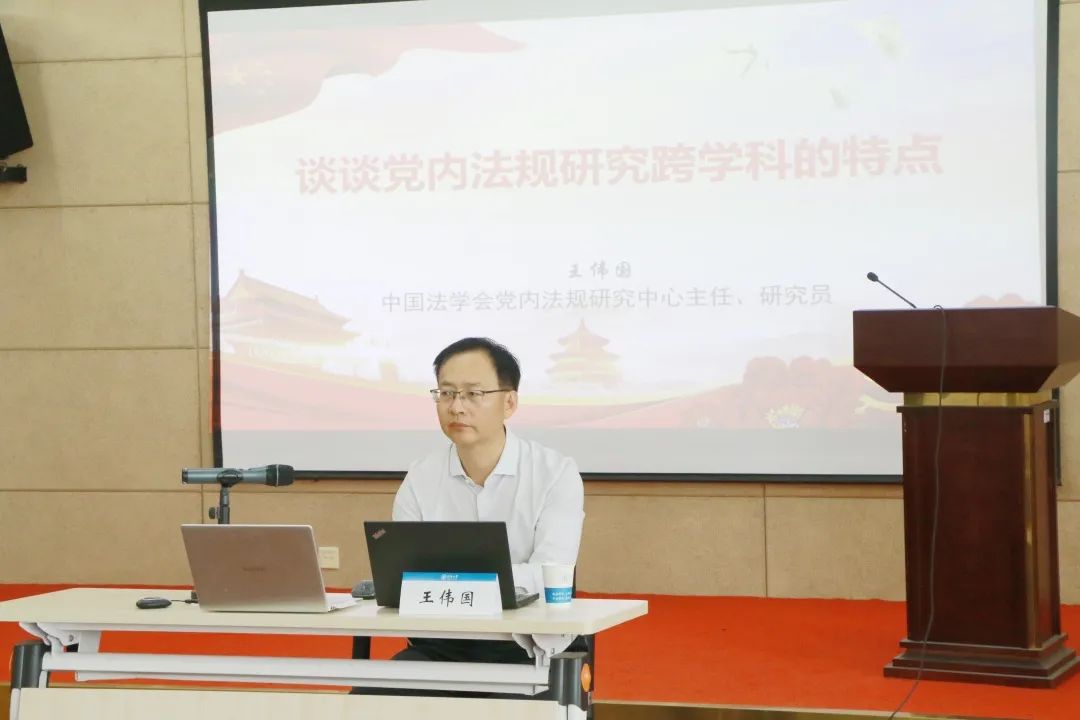 王主任首先从中办、国办联合印发的《关于加强新时代法学教育和法学理论研究的意见》谈起,分析了《意见》中“加快完善法学教育体系”和“创新发展法学理论研究体系”的相关内容,重点强调了“把握党内法规研究跨学科特点统筹基础研究和应用研究,为加强党内法规制度建设、依规治党提供有力学理支撑”。