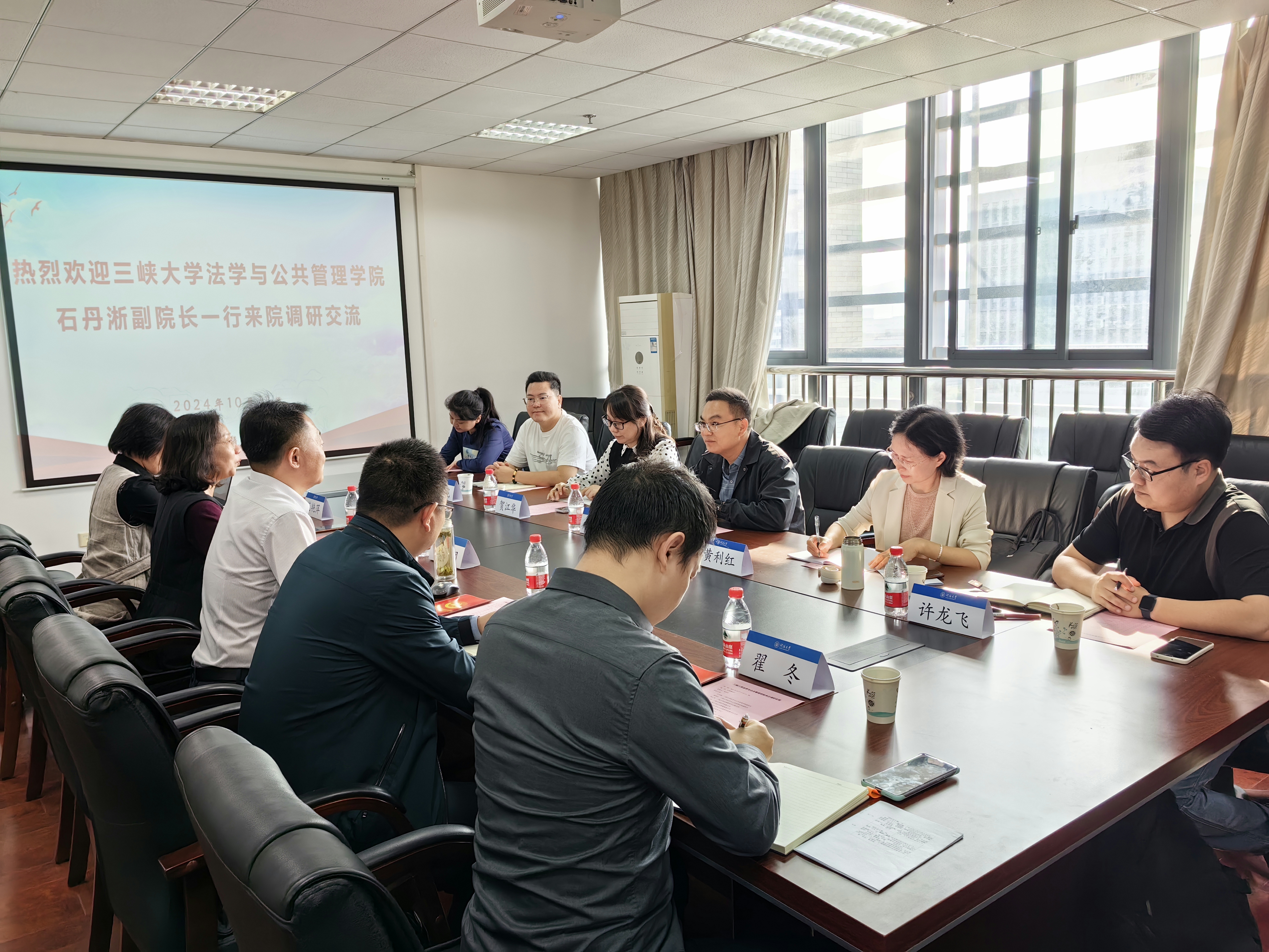 10月11日,三峡大学法学与公共管理公司副经理石丹淅、黄利红,法律服务中心副主任贺江华,法学系副主任刘子龙,公共管理系副主任许龙飞,教学办主任邓君玲老师来公司调研法学专业人才培养模式、专业认证、一流专业与一流课程建设及团队建设等工作上的主要做法和经验。公司党委书记刘成钢,副经理吴志红,副书记、副经理宋伟卫,法学实践中心执行主任范艳萍,经理助理翟冬,本科教学秘书陈文琪参加交流。
