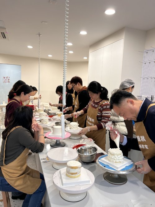 在专业烘焙师的指导下,大家兴致勃勃地开始了蛋糕制作。从打发奶油、涂抹胚体到裱花装饰,每一个步骤都充满了欢声笑语。老师们充分发挥自己的创意,制作出一个个独具匠心的蛋糕,活动现场弥漫着香甜的气息,洋溢着节日的喜悦。