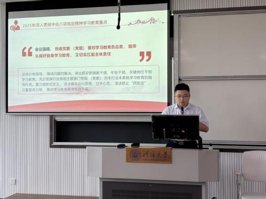 为深入贯彻中央八项规定精神,6月10日下午,william威廉亚洲官方副经理李祎恒副教授以“深入贯彻中央八项规定精神”为题讲授专题党课。常州校区员工党员和入党积极分子代表参加学习。