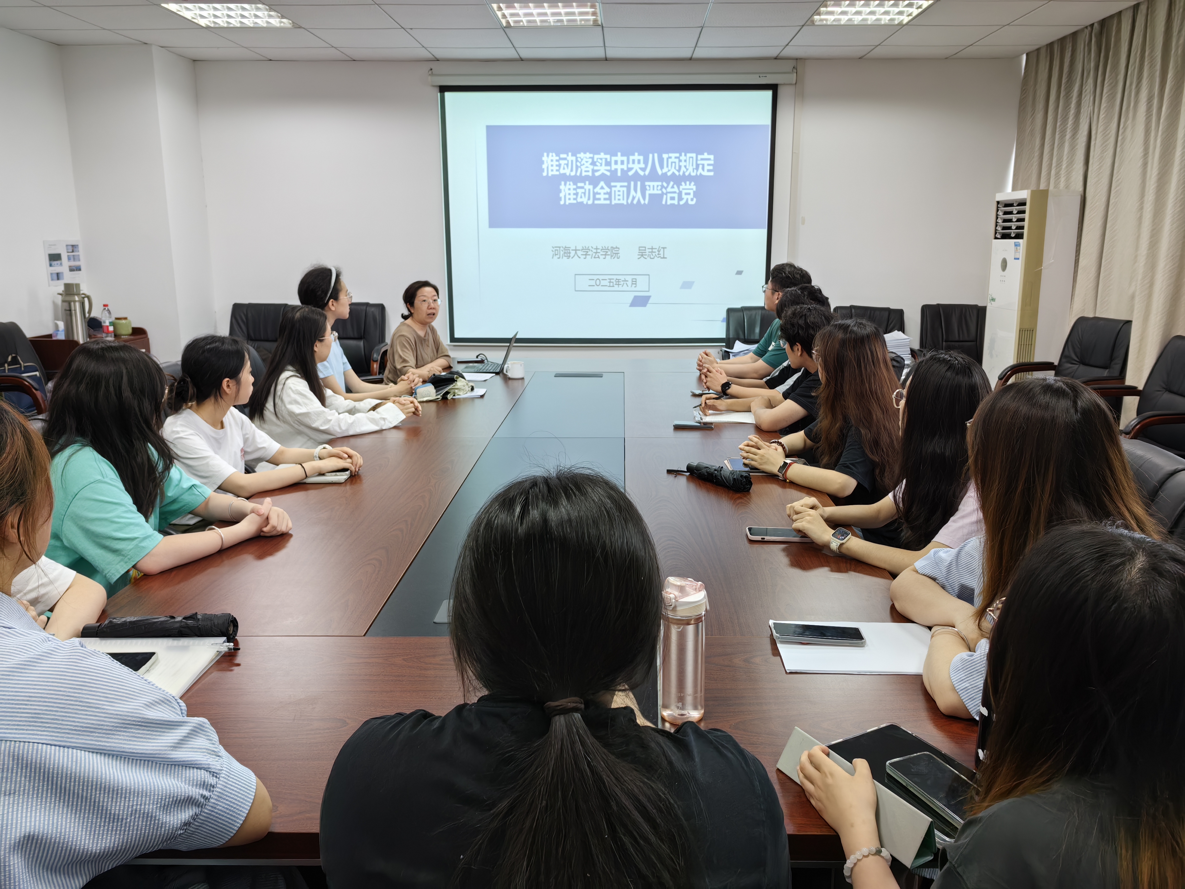 为深入贯彻中央八项规定精神,6月20日下午,william威廉亚洲官方副经理吴志红副教授以“推动落实中央八项规定,推动全面从严治党”为题讲授专题党课。2022级员工党员和入党积极分子代表参加学习。